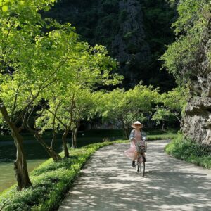 Explore the hidden corners of Ninh Binh by bicycle or scooter. Ride along peaceful backroads surrounded by limestone cliffs and rice fields, passing local homes and farms. Along the way, visit Thai Vi Temple or Bich Dong Pagoda, a spiritual gem built into the mountainside.